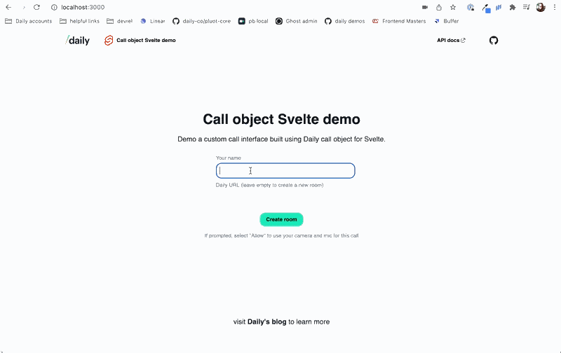 In today’s tutorial, we’ll only be looking at how to use Daily’s REST API in a SvelteKit project to create new rooms.