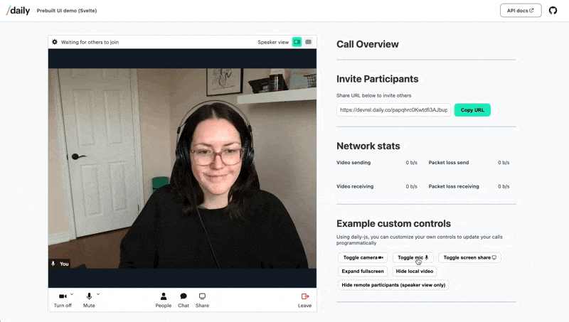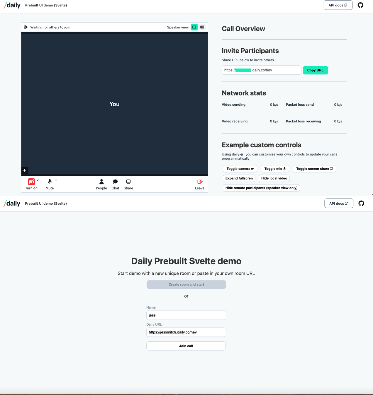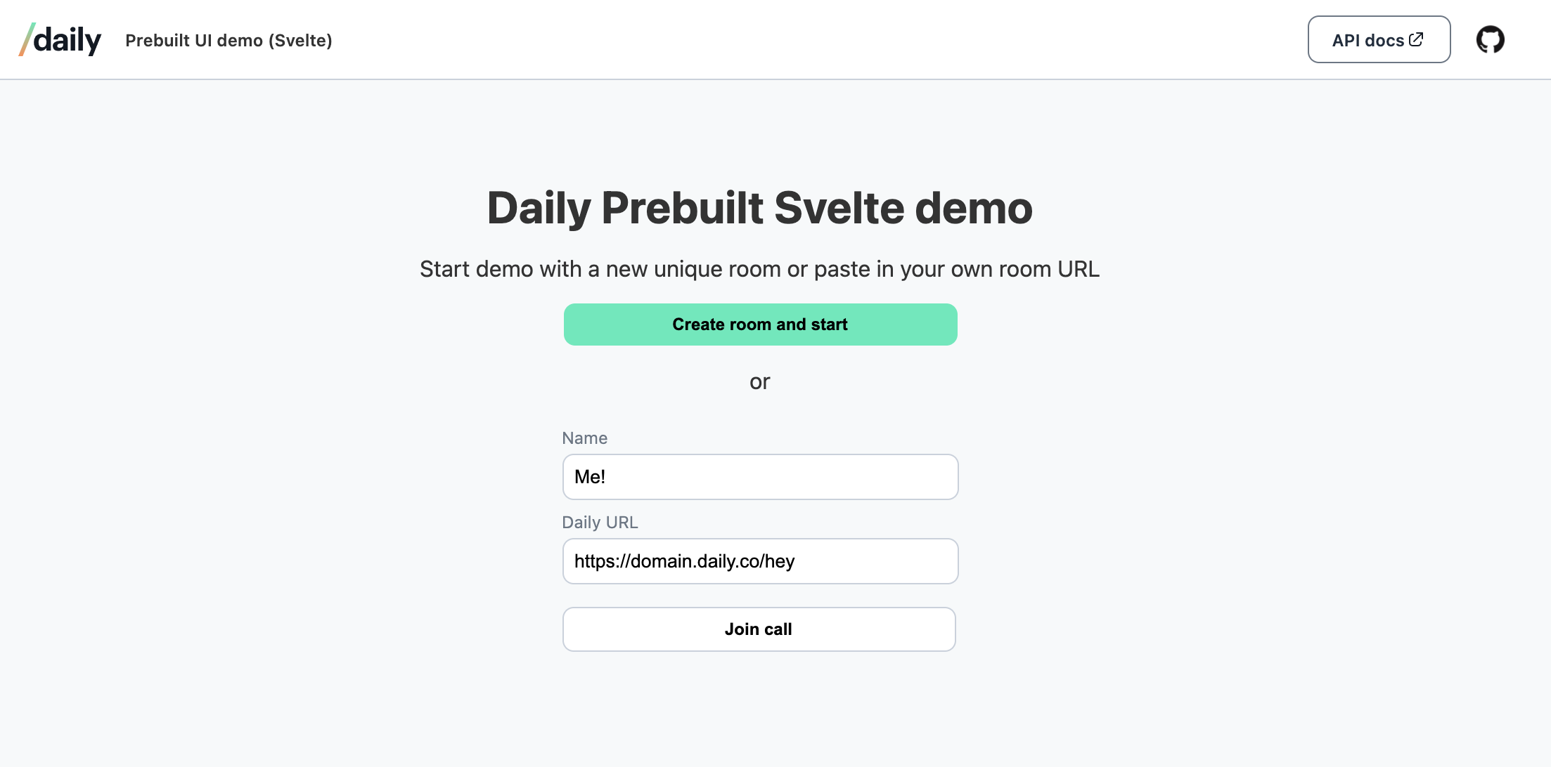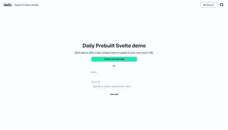To get started locally, clone the Daily Prebuilt Svelte demo app and run the following commands in your terminal: