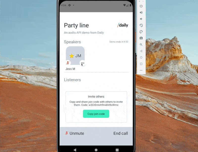- Once the room is joined, the room code can be shared with anyone. Rooms created from one app are compatible with any of our other Party Line apps (iOS, Android, React/web, or React Native).