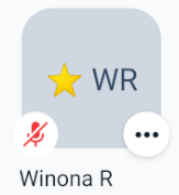 - Participant UI, with each participant represented by a box with their initials and a “show more” menu button that renders the