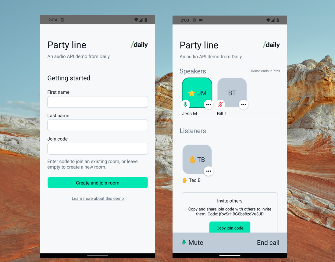 To help our customers support their audio-only use cases, we launched an audio starter kit (a.k.a. Party Line) earlier this year, which includes demo apps in React (web), iOS, Android, and React Native.