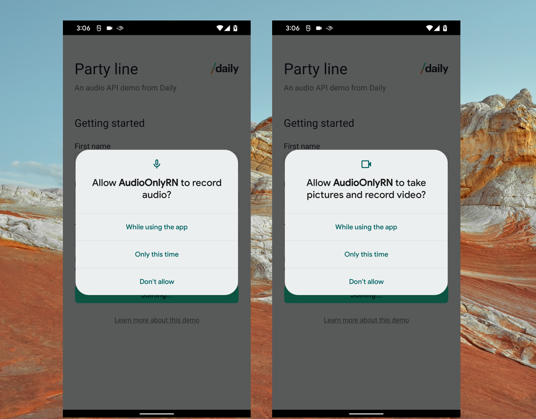 If you don’t address this issue, your app users will see both of these device permission requests, which may be a bit of a red flag 🚩 for them. (Why would you need camera permissions for an audio app? 🤔)