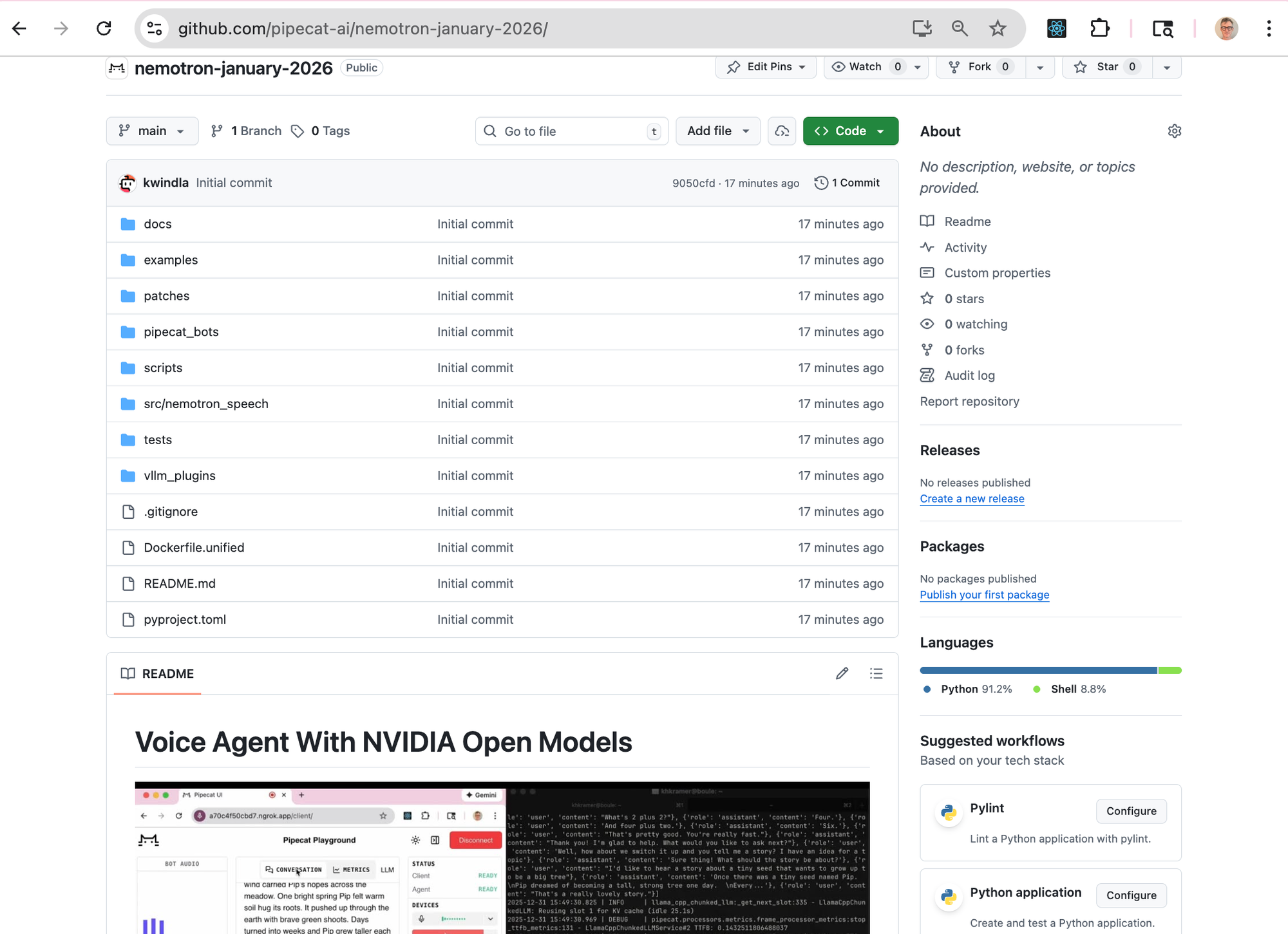 Feel free to just jump over to the code. Or read on for technical notes about building fast voice agents and the NVIDIA open models.