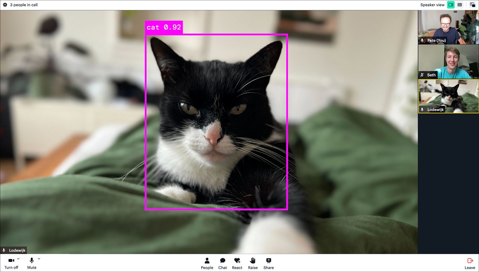 daily-pythonsends the frame with the bounding box into the call, allowing everyone to enjoy a dedicated feed of pets!