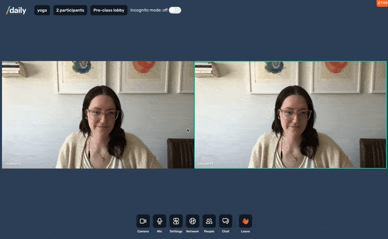 Okay, so there’s another step before we wrap up. The in-class view actually uses a speaker view where the current speaker is placed in the large video tile. To properly apply incognito mode we’d need to update that view as well.