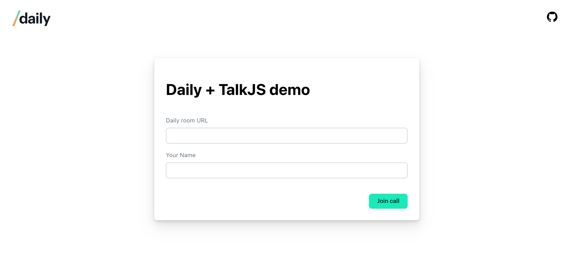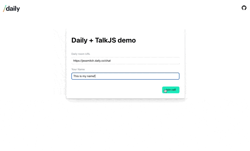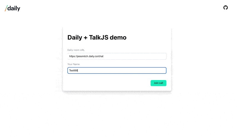 Let’s start with the more involved option: using a Daily meeting token. We’ll use the Daily Prebuilt and TalkJs demo app for the sample code below.