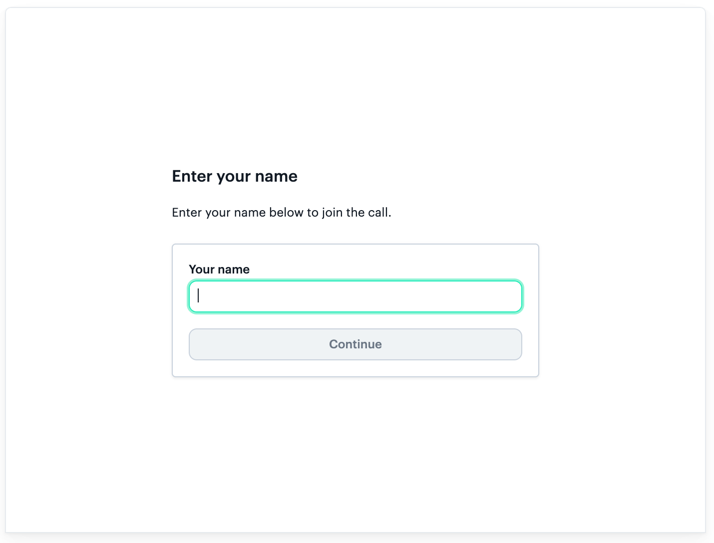 - If the username is not set in local storage, the name form will show, which requires a name to be entered. Submitting this form will bring the user to the prejoin UI just like option one above.