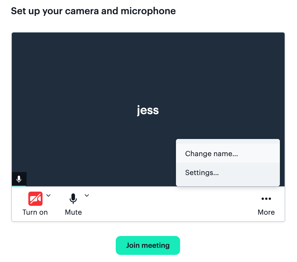 - If a username has previously been set in the browser’s local storage, that name will be used and the participant will see their device options and video.