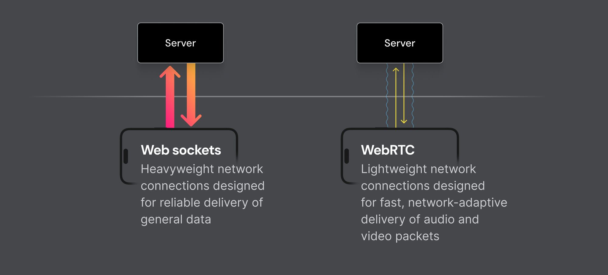 Web sockets are an abstraction built on top of TCP, which is a relatively complex networking layer designed to deliver every single data packet as reliably as possible. Which sounds like a good thing, but turns out not to be when real-time performance is the priority. If you need to stream packets at very low latency, it’s better to use a faster, simpler network protocol called UDP.