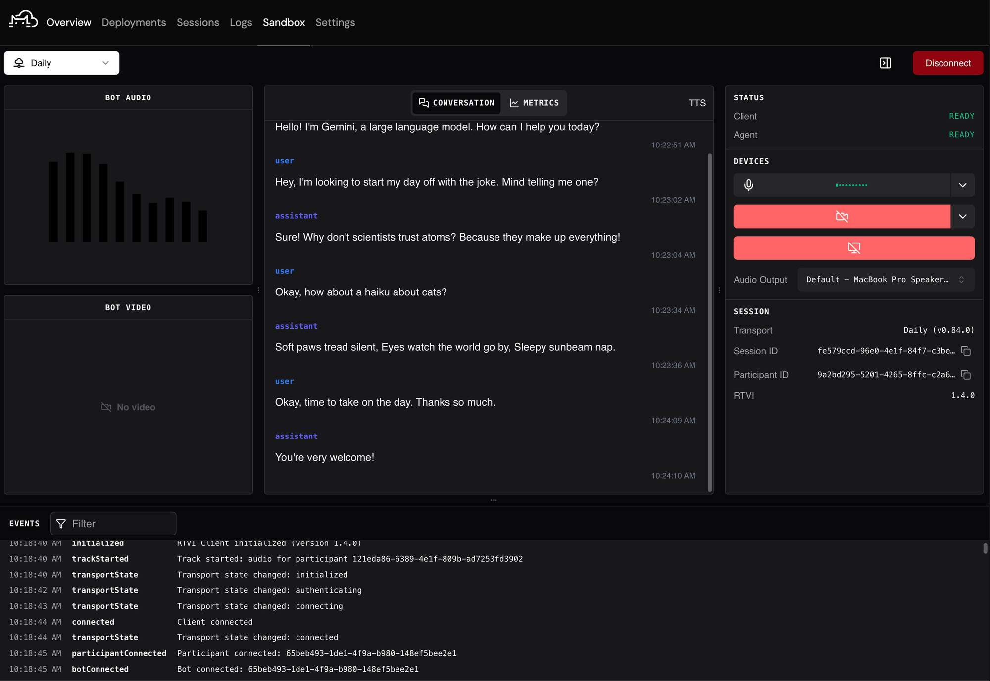 The mission behind our work at Daily is to support the development of voice and multimodal AI, from enterprise voice agents to new use cases like the robot personal assistant demo that opened the NVIDIA CES Keynote this year.