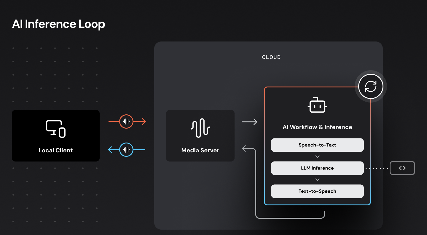 - Making multiple requests to AI services – transcription, LLM, text-to-speech – is faster and more reliable from a server in the cloud than from a user’s local machine.