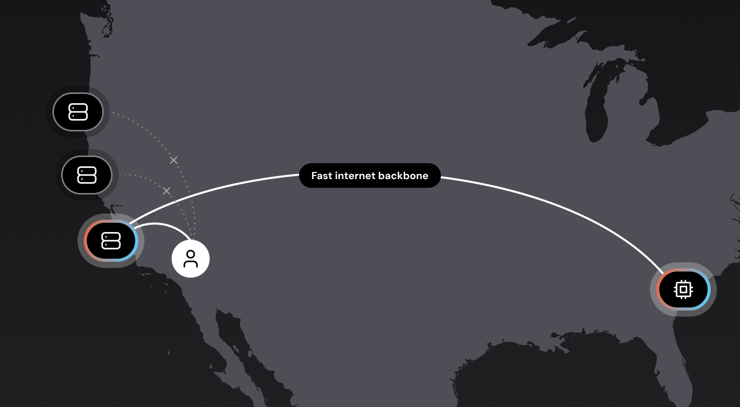 Connecting users to nearby servers is also important. Sending a data packet round-trip between San Francisco and New York takes about 70ms. Sending that same packet from San Francisco to, say, San Jose takes less than 10ms.