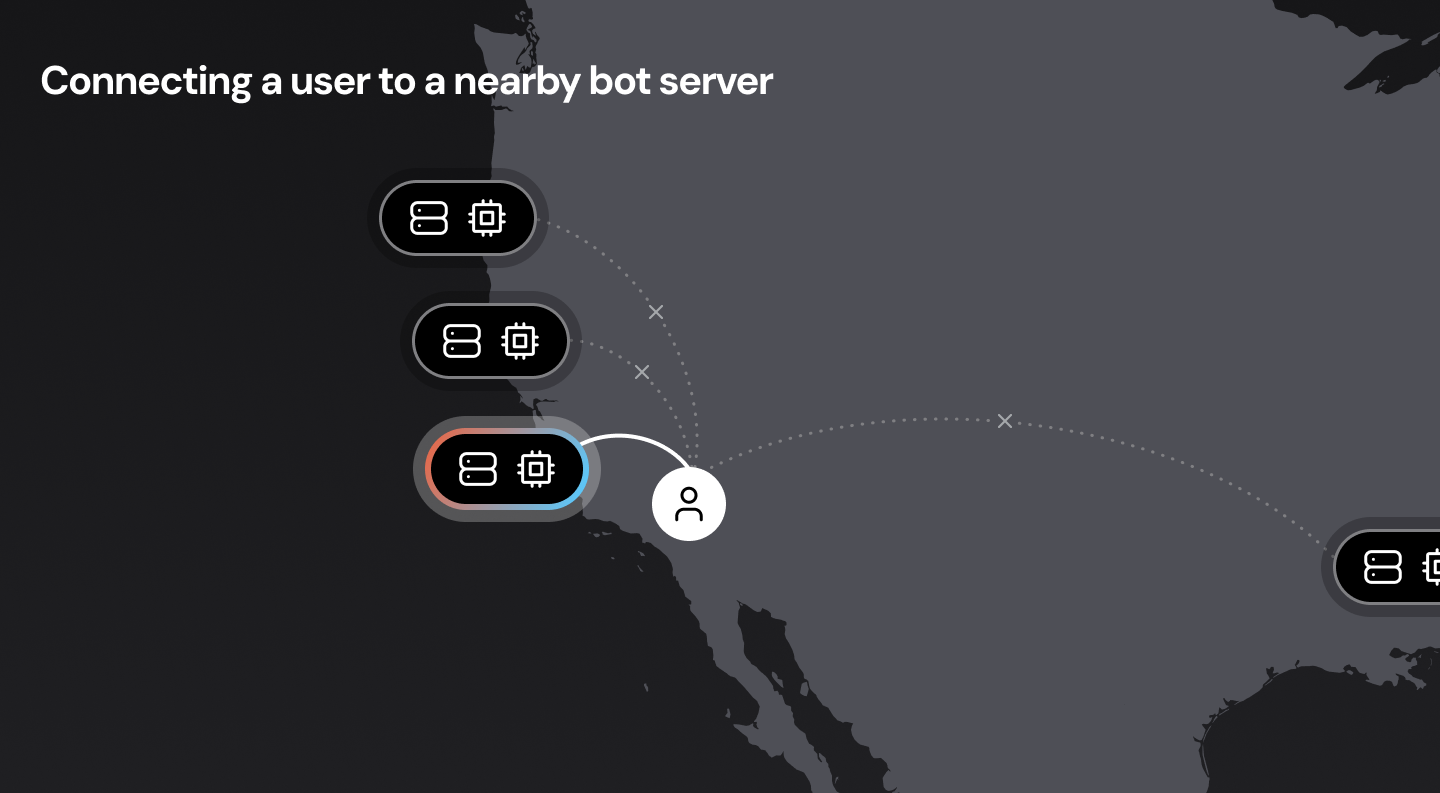In a perfect world, we would have voice bots running everywhere, close to all users. This may not be possible, though, for a variety of reasons. The next best option is to design our network infrastructure so that the “first hop” from the user to the WebRTC cloud is as short as possible. (Routing data packets over long-haul Internet connections is significantly slower and more variable than routing data packets internally over private cloud backbone connections.) This is called edge or mesh networking, and is important for delivering reliable audio at low latency to real-world users. If you’re interested in this topic, here’s a deep dive into WebRTC mesh networking.